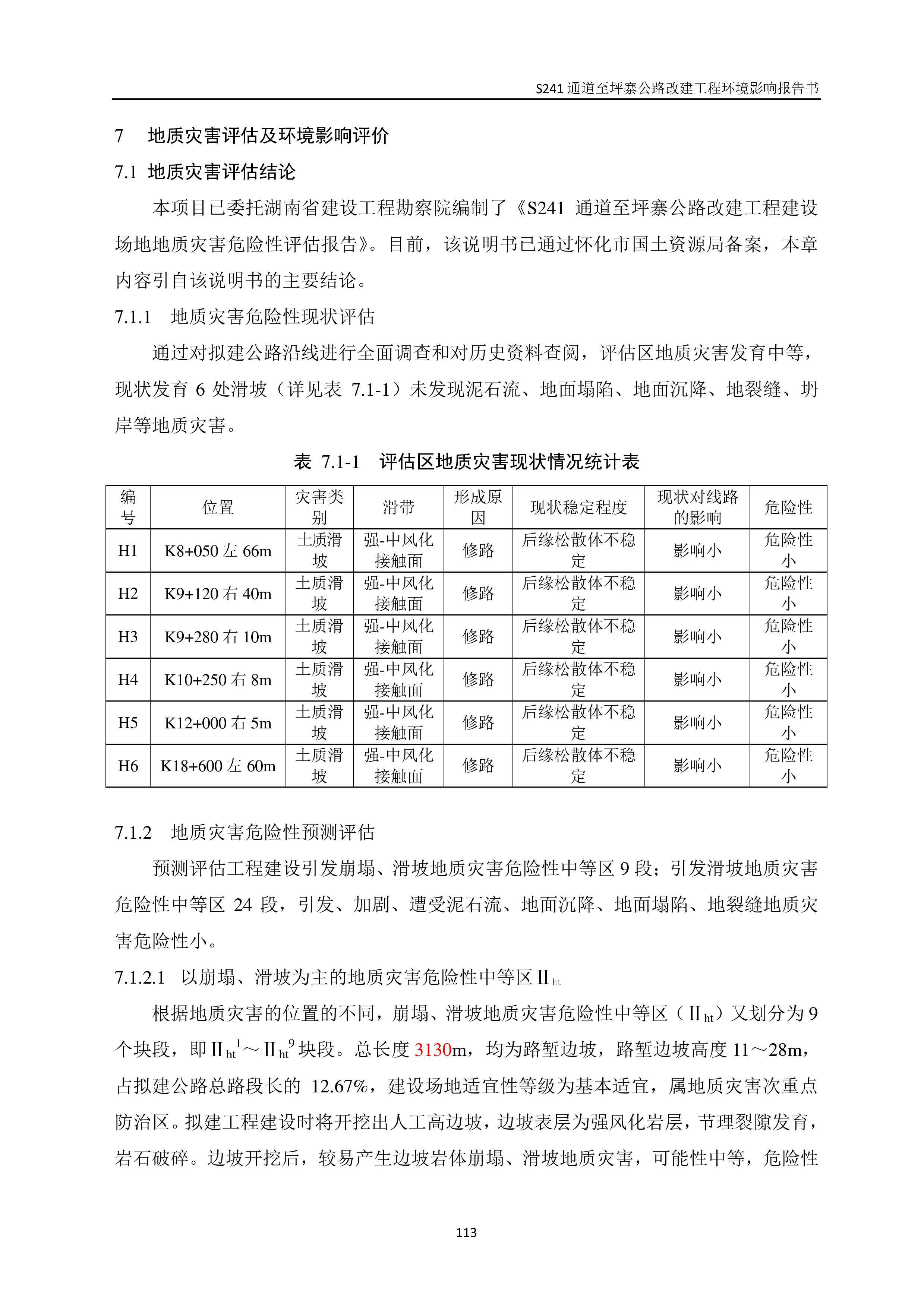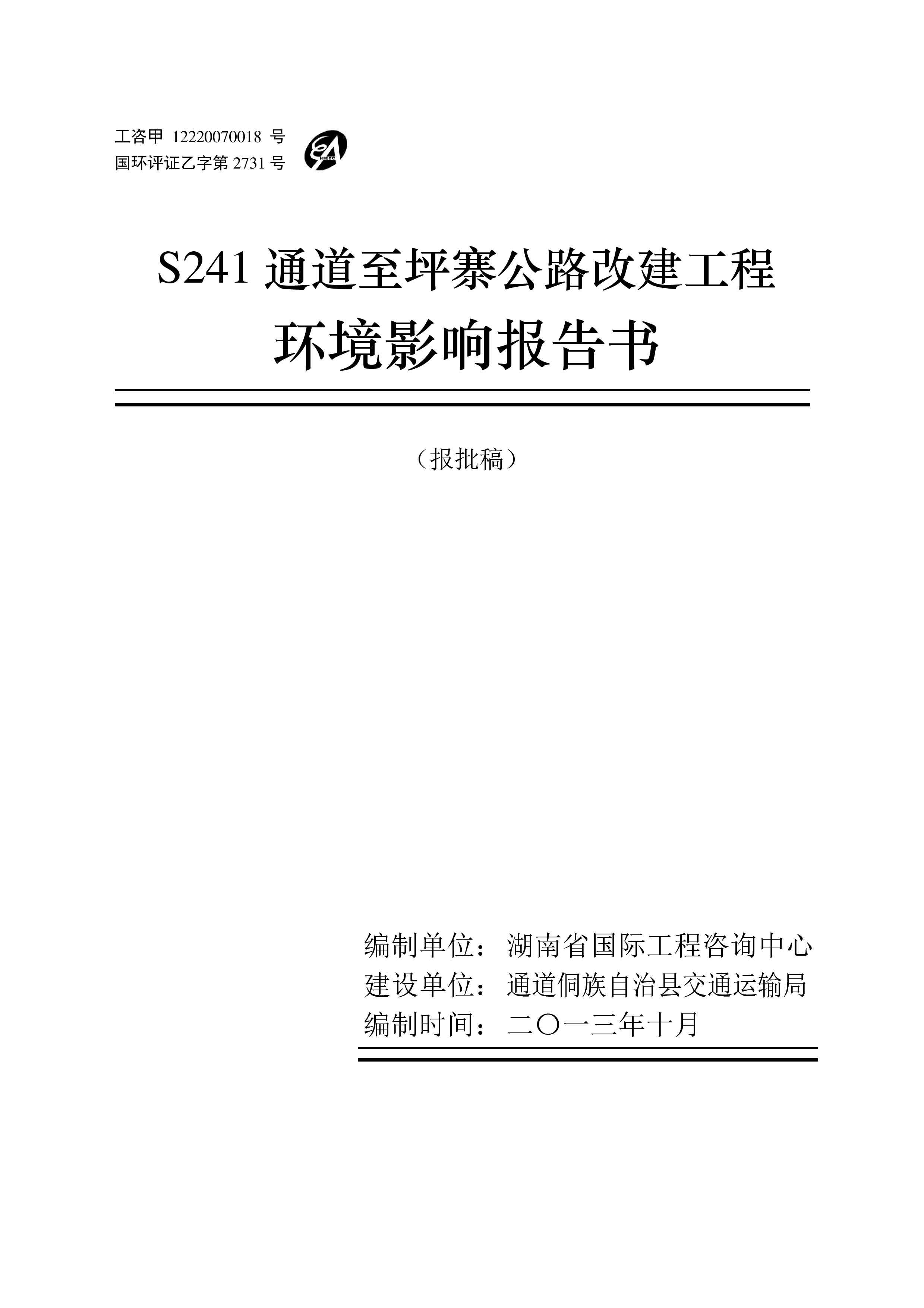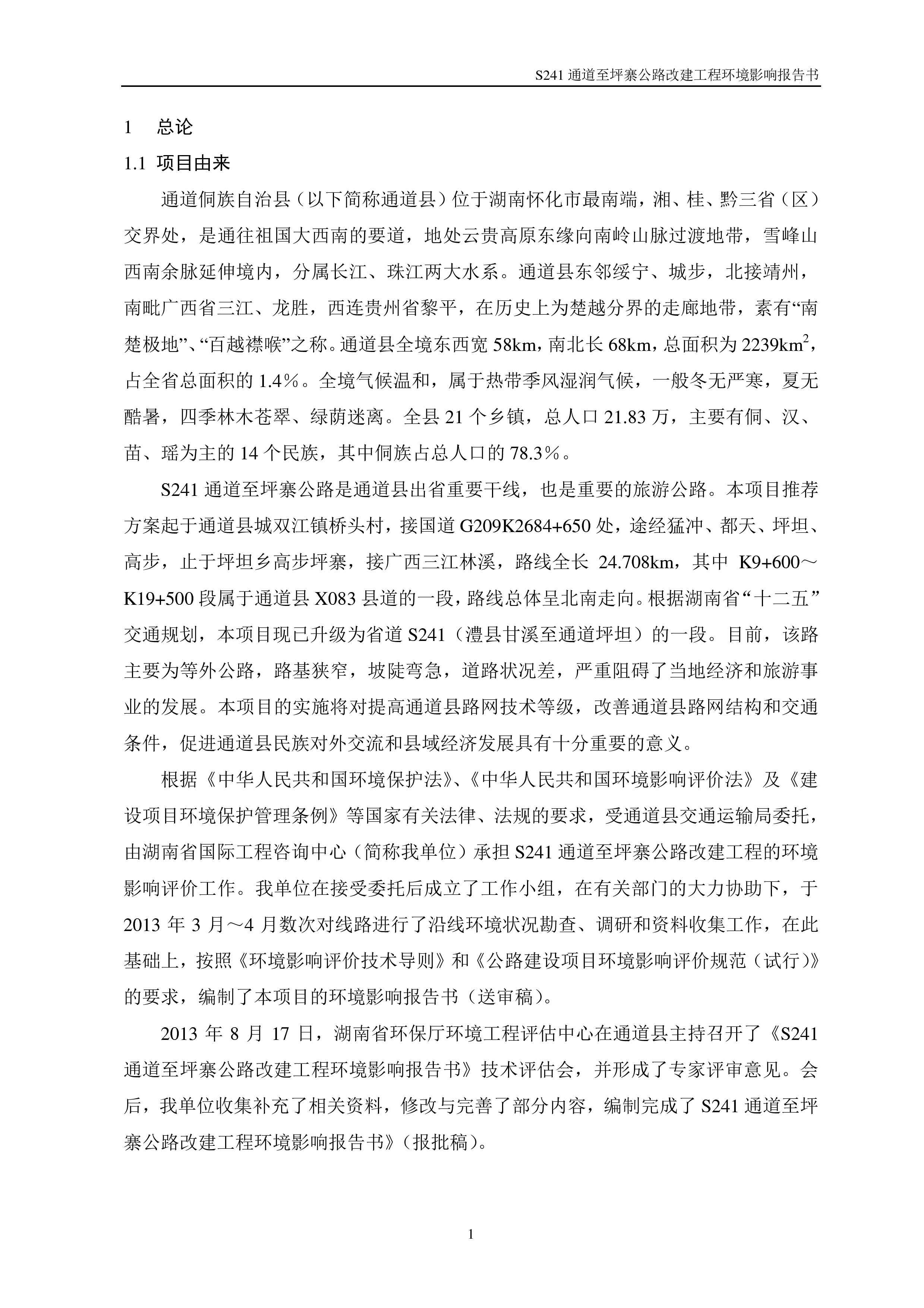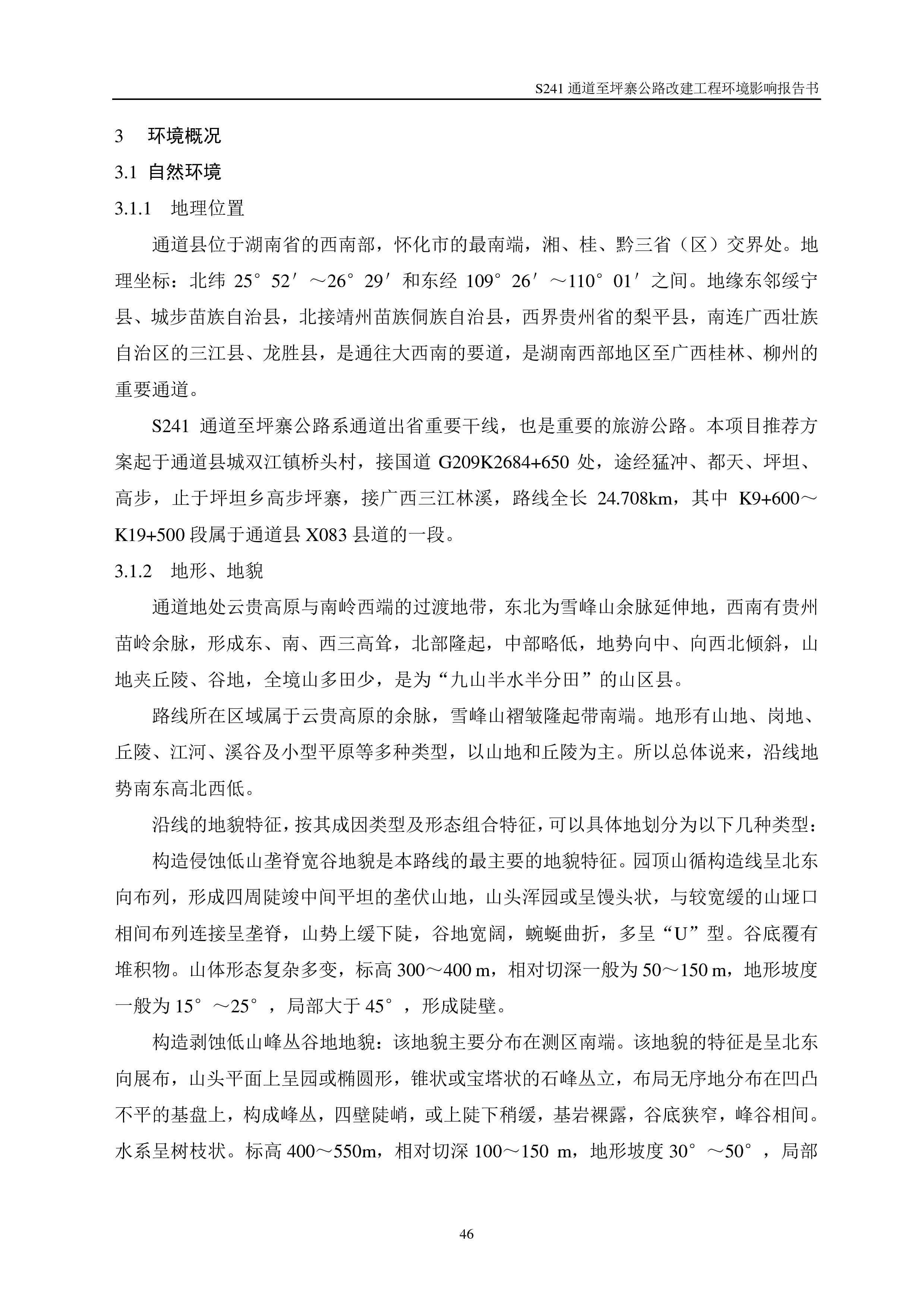 通道至坪寨公路改建工程情形影响报告书(报批稿)