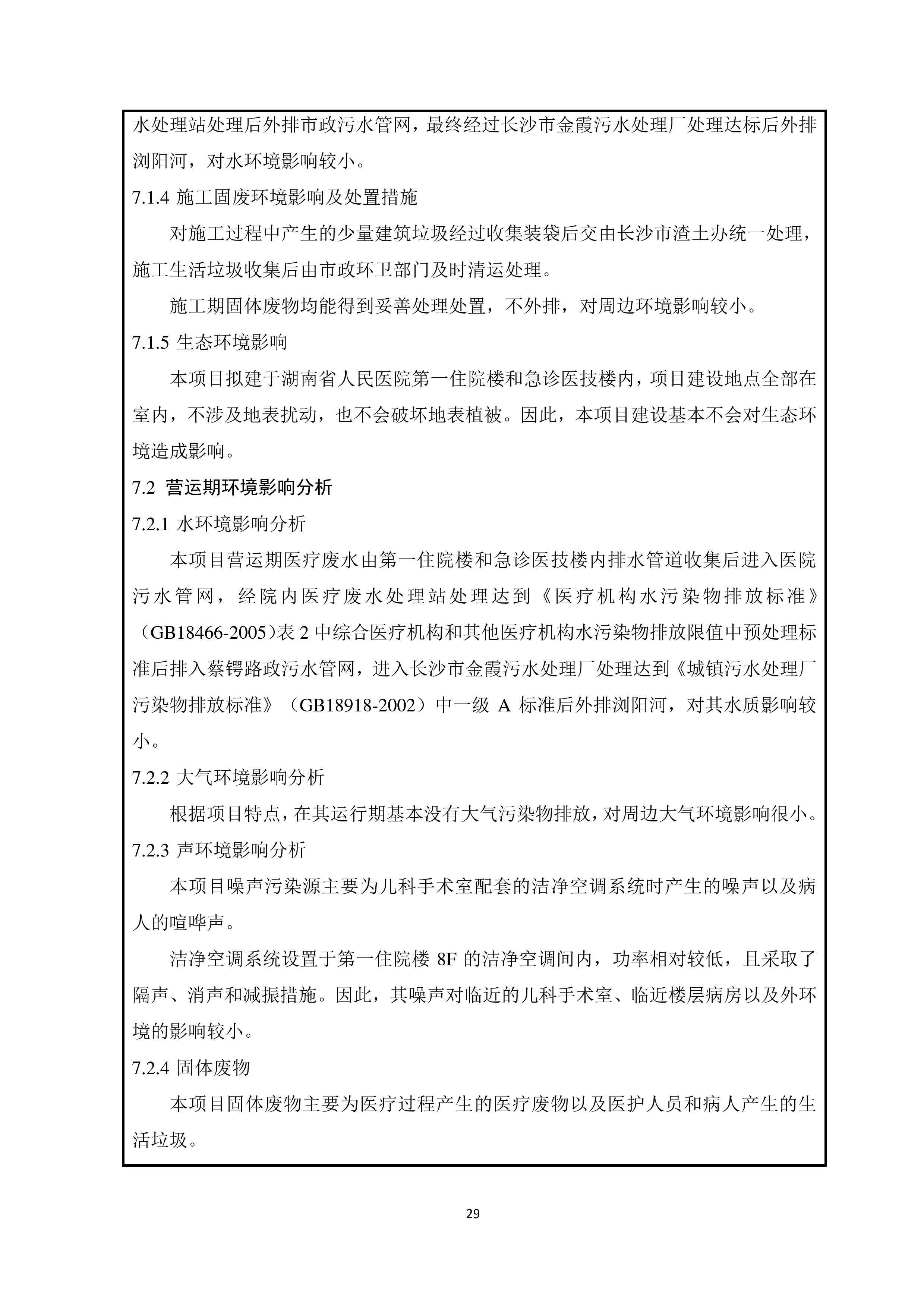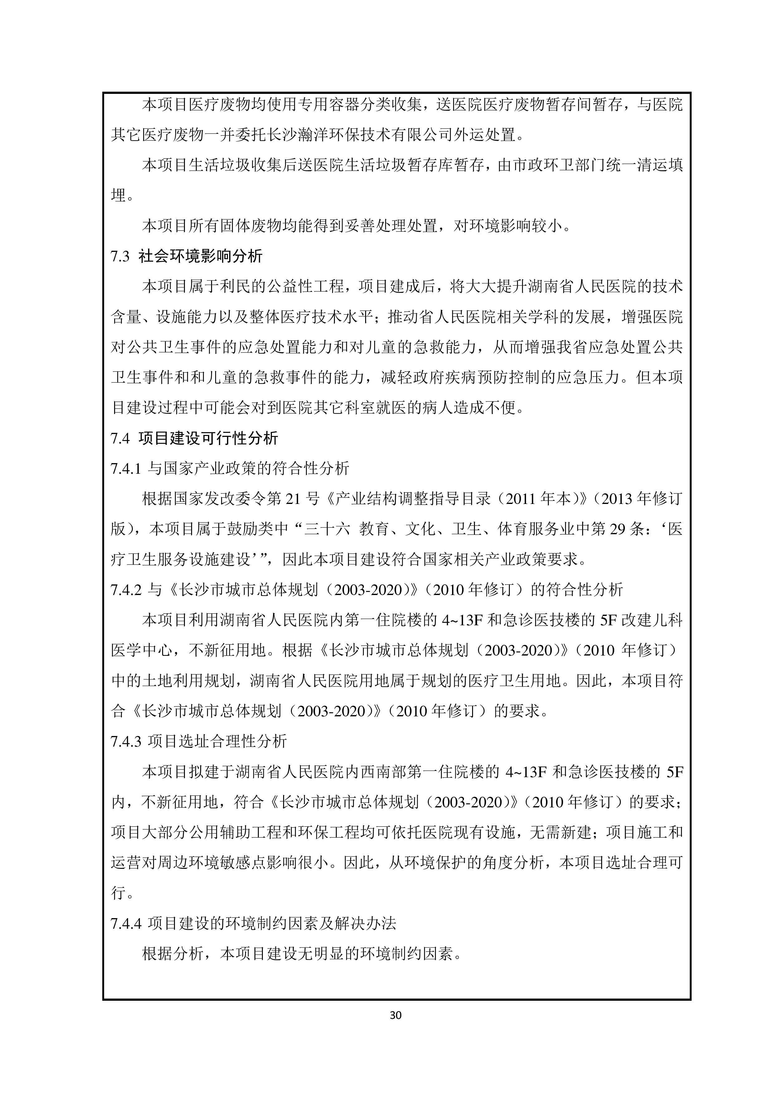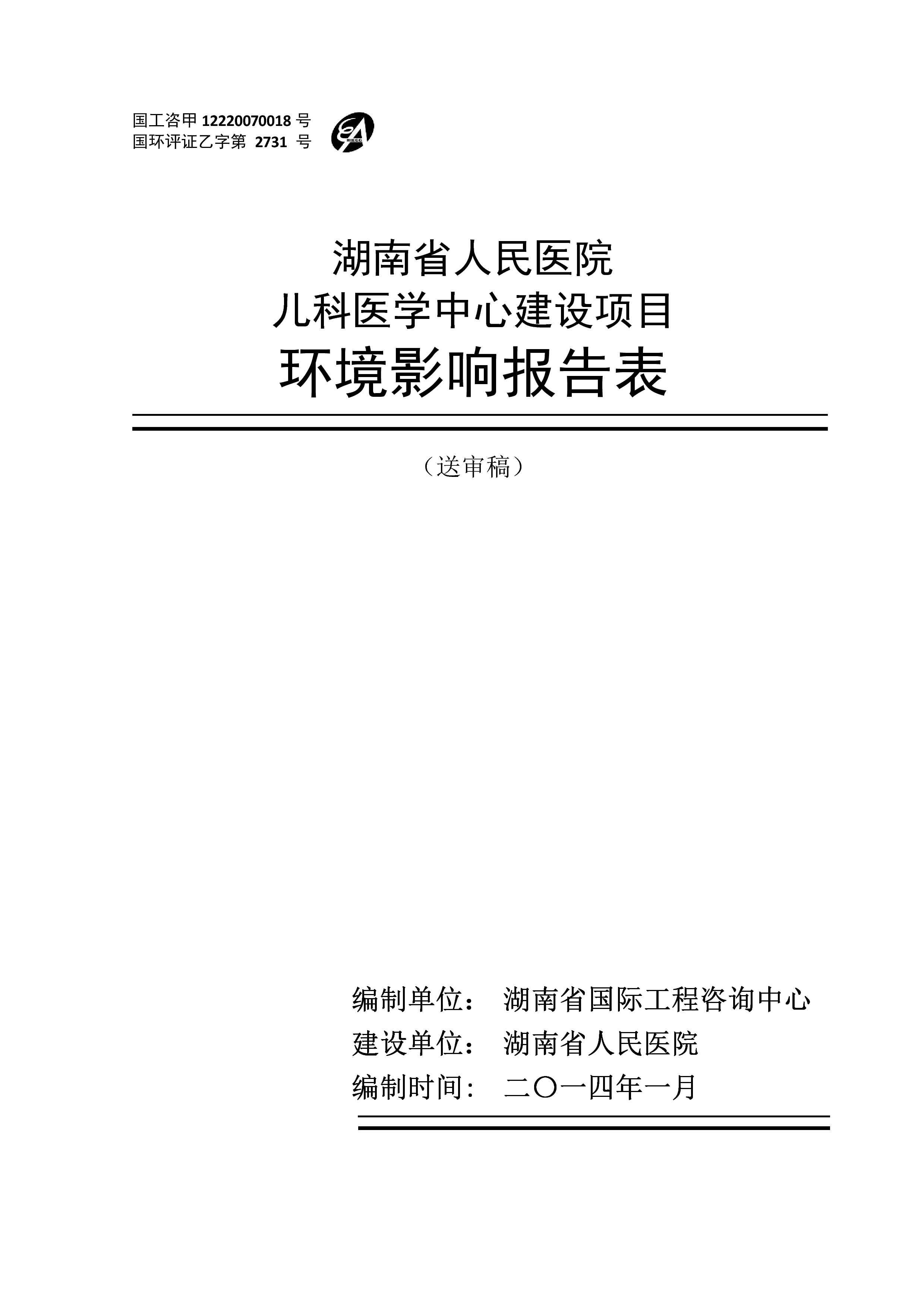 湖南省人民医院儿科医学中心建设项目情形影响报告表(送审稿)