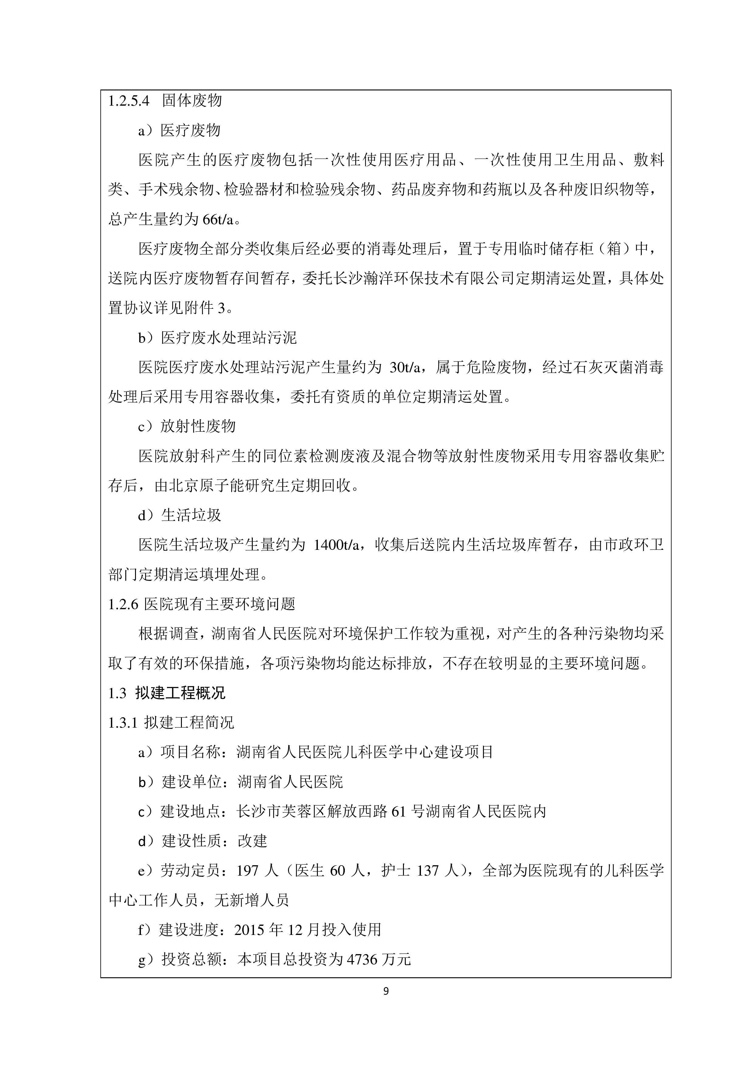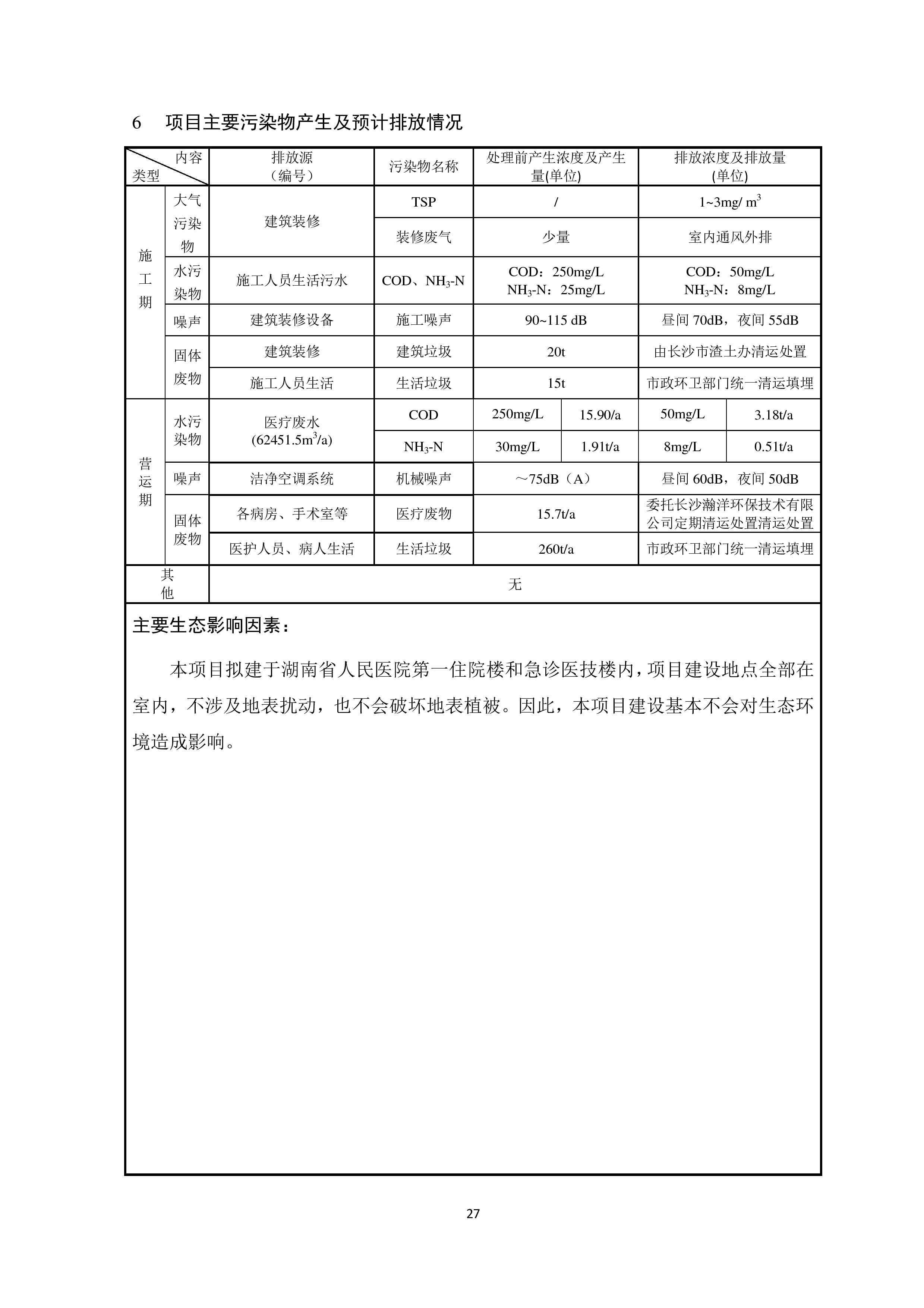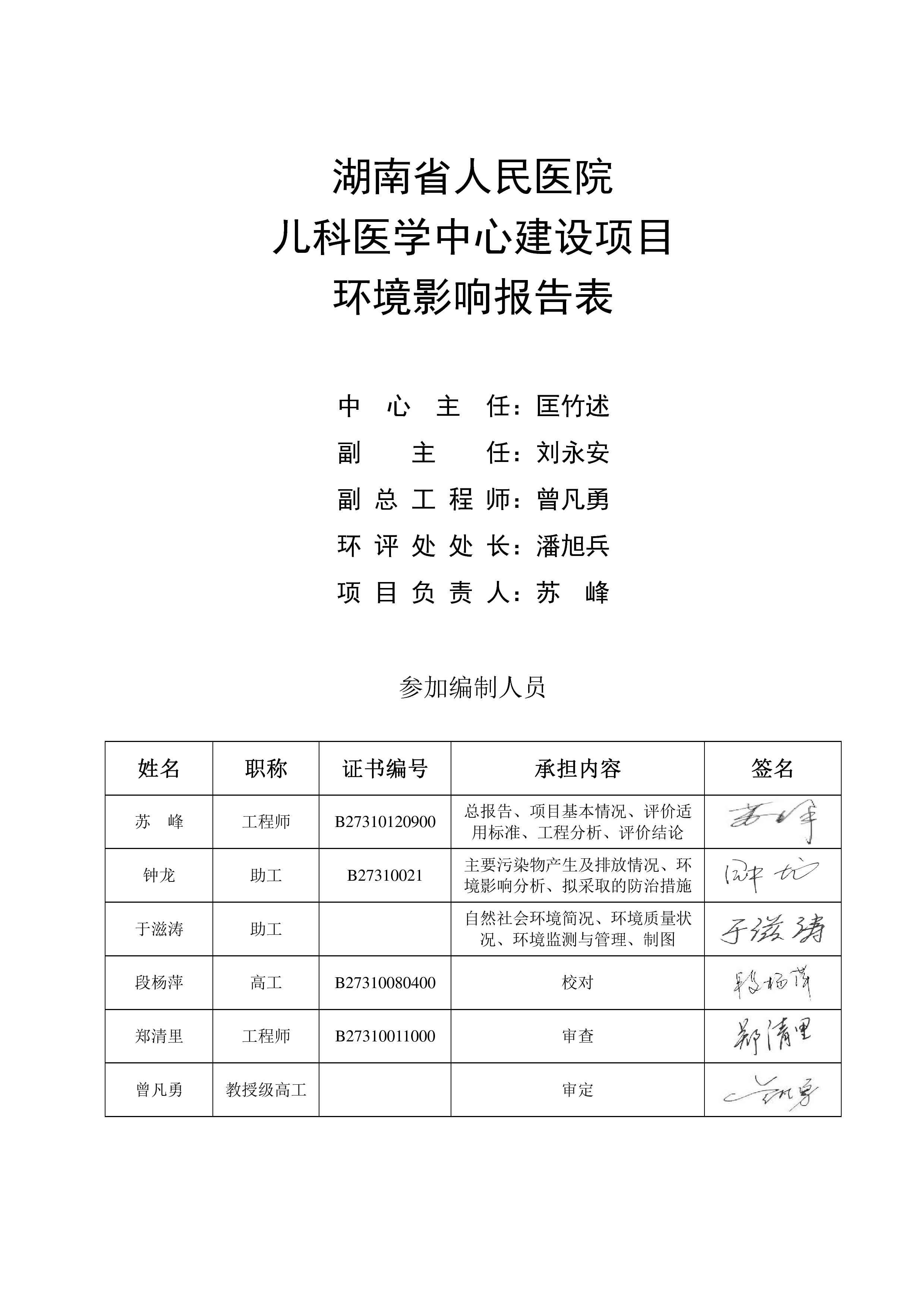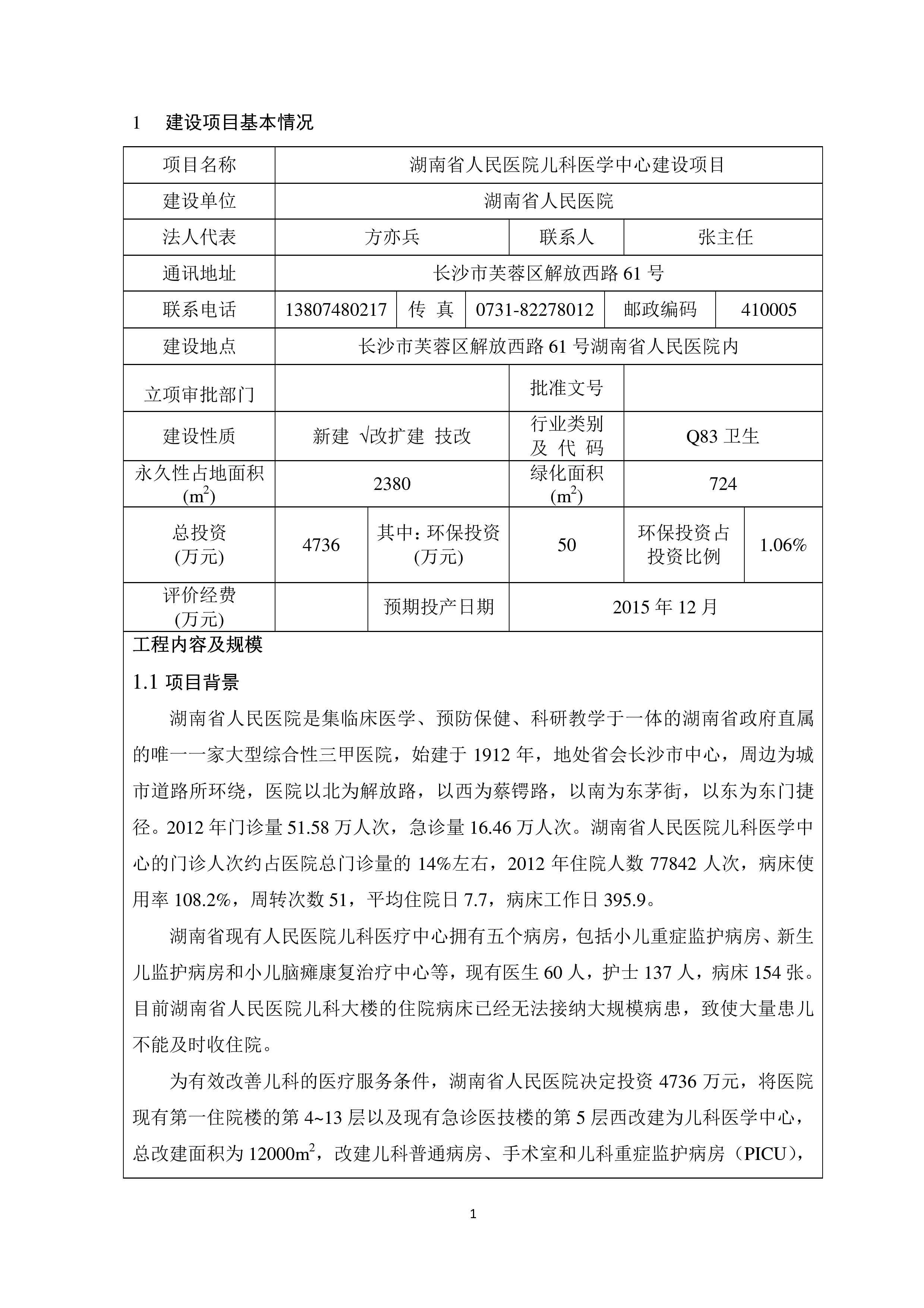 湖南省人民医院儿科医学中心建设项目情形影响报告表(送审稿)